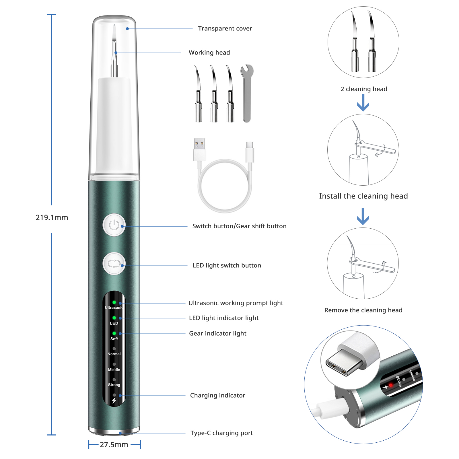 Встроенный светодиодный свет, легко определить проблемы с зубами и провести точную чистку