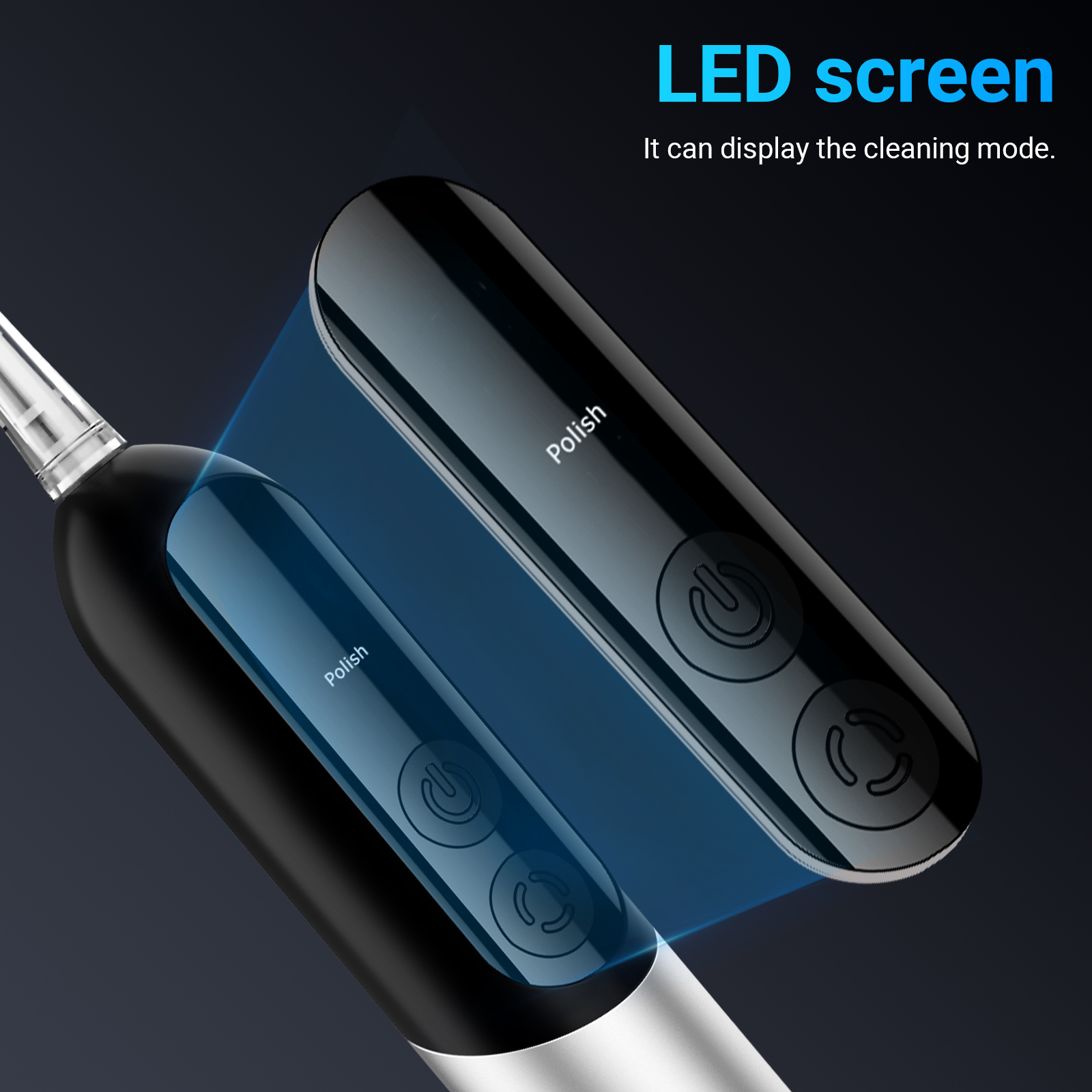 The screen clearly indicates the battery level, preventing you from running out of power mid-brush.