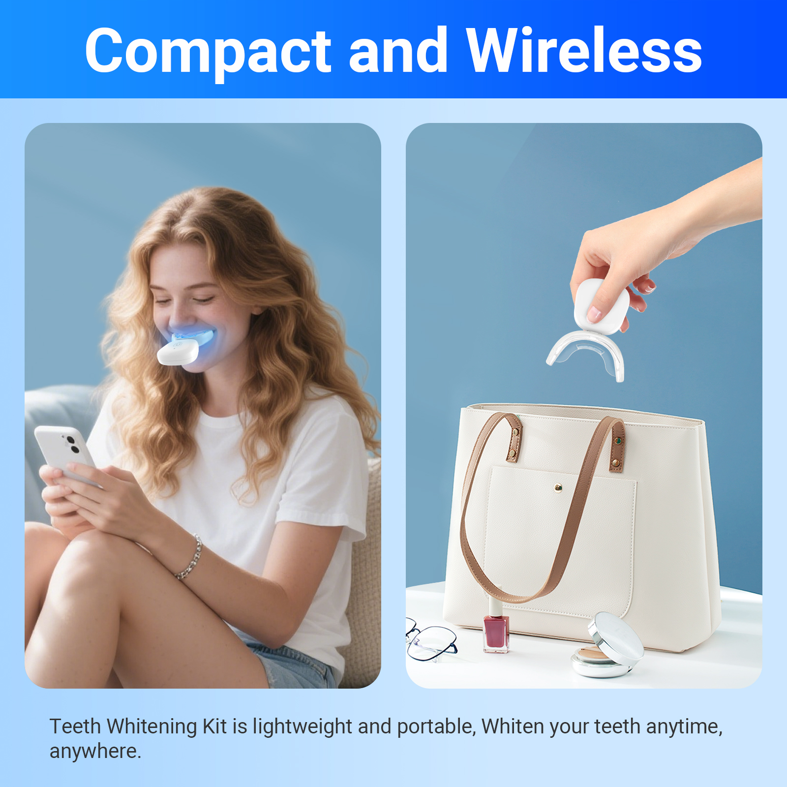 Teeth Whitening Kit is lightweight and portable, Whiten your teeth anytime, anywhere.