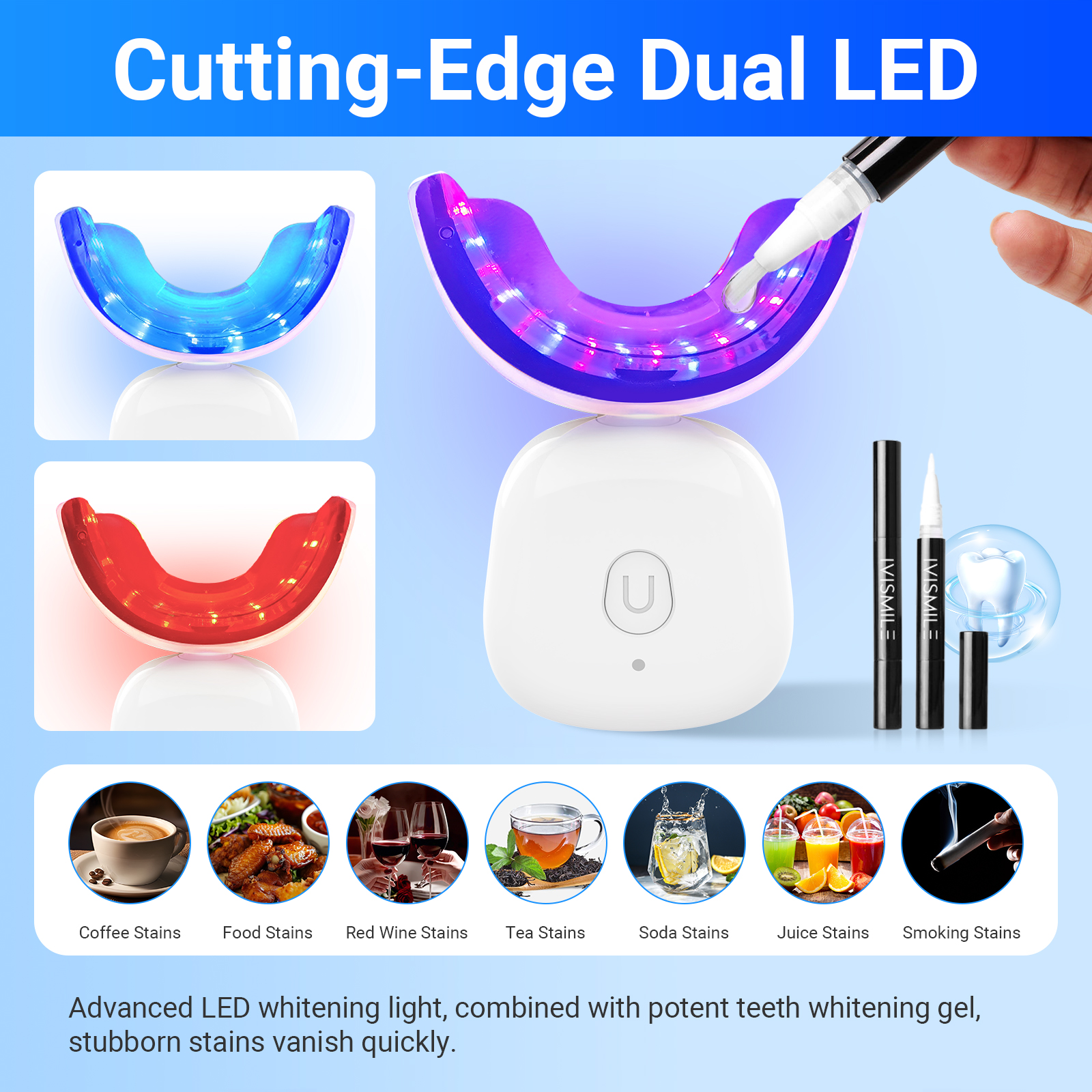 Advanced LED whitening light, combined with potent teeth whitening gel, stubborn stains vanish quickly.